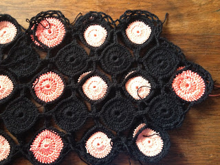 Quelques nouvelles de mon poignet et de l'étole. Je n'ai plus mal, en fait c'était une entorse légère. Si je n'abuse pas trop ça va. Donc je me suis remise à crocheter et je suis en train de faire une bordure pour l'étole. Maintenant elle mesure 146 cm de long et 28 cm de large. Elle commence à ressembler à une étole.