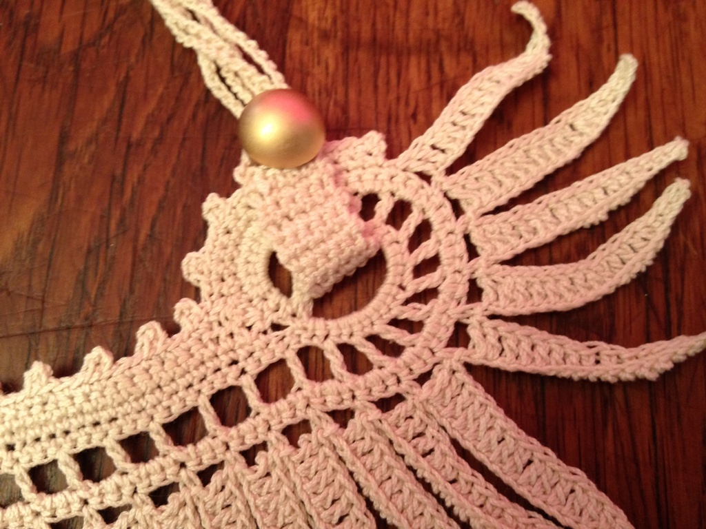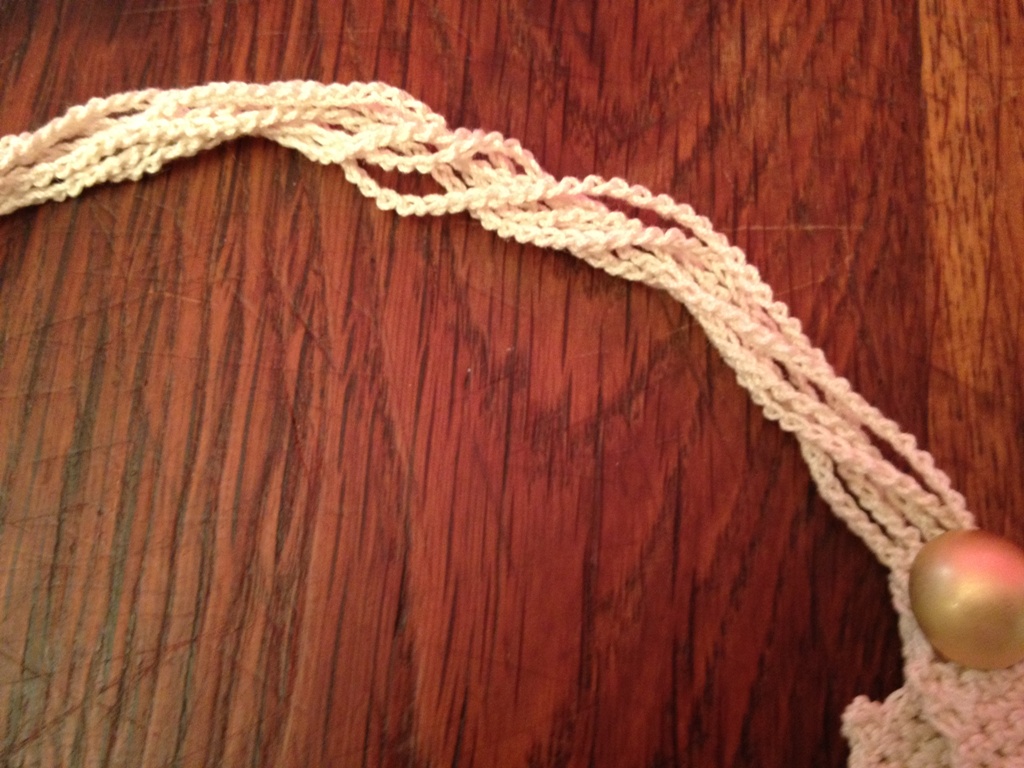 | J'ai mis un petit arceau en mailles en l'air pour le bouton doré afin de pouvoir passer le bout dans le collier et après boutonner |