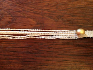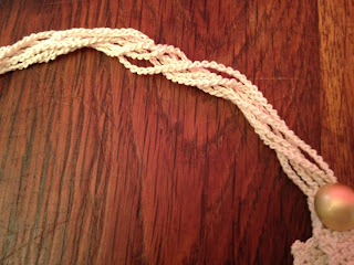 | La cordelette est en fait 5 chaînettes de mailles en l'air qui se rejoignent à la fin de chaque rang. |