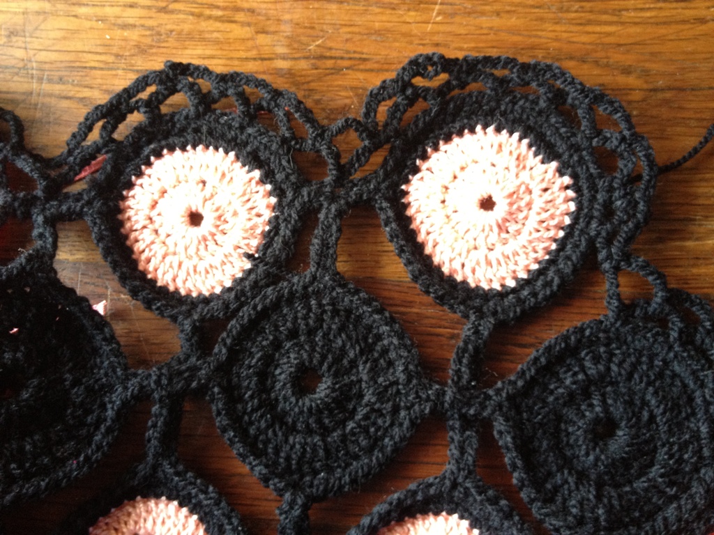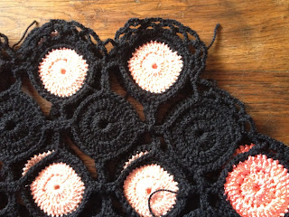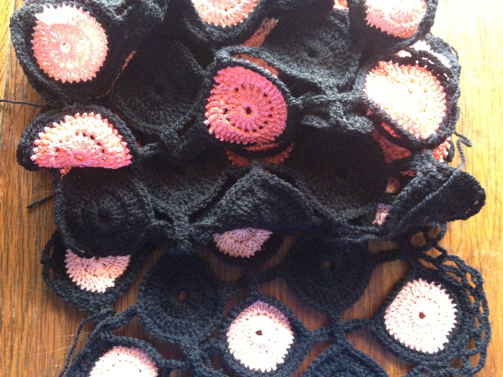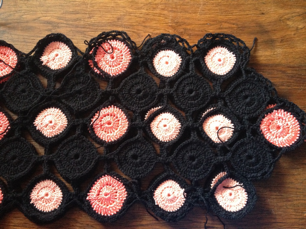 Quelques nouvelles de mon poignet et de l'étole. Je n'ai plus mal, en fait c'était une entorse légère. Si je n'abuse pas trop ça va. Donc je me suis remise à crocheter et je suis en train de faire une bordure pour l'étole. Maintenant elle mesure 146 cm de long et 28 cm de large. Elle commence à ressembler à une étole.